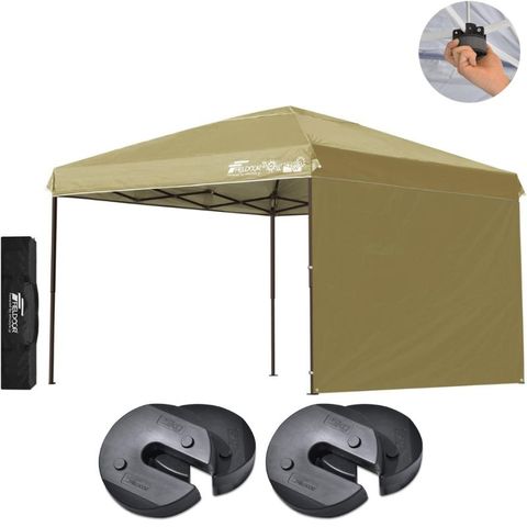 FIELDOOR ワンタッチタープテント 3m (標準:サンド/スチール/センターロック/ウエイト4点組み/サイドシート1枚付) テント タープ ワンタッチ ワンタッチテント ワンタッチタープ UV加工 撥水 ベンチレーション 収納バッグ付 日よけ キャンプ バーベキュー 送料無料