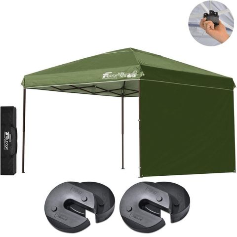 FIELDOOR ワンタッチタープテント 3m (標準:カーキ/スチール/センターロック/ウエイト4点組み/サイドシート1枚付) テント タープ ワンタッチ ワンタッチテント ワンタッチタープ UV加工 撥水 ベンチレーション 収納バッグ付 日よけ キャンプ バーベキュー 送料無料