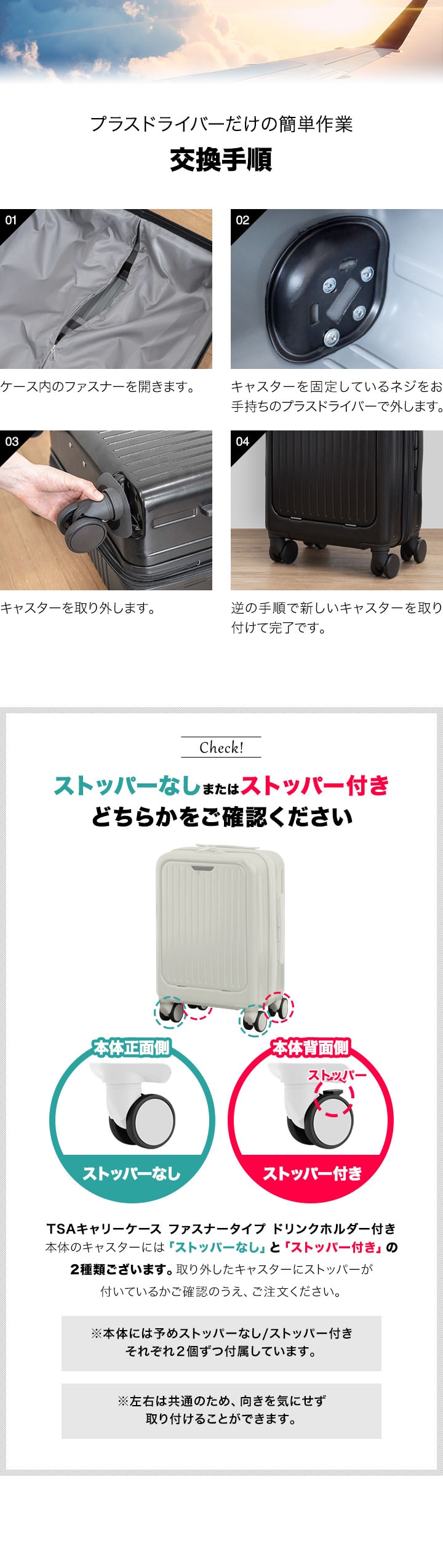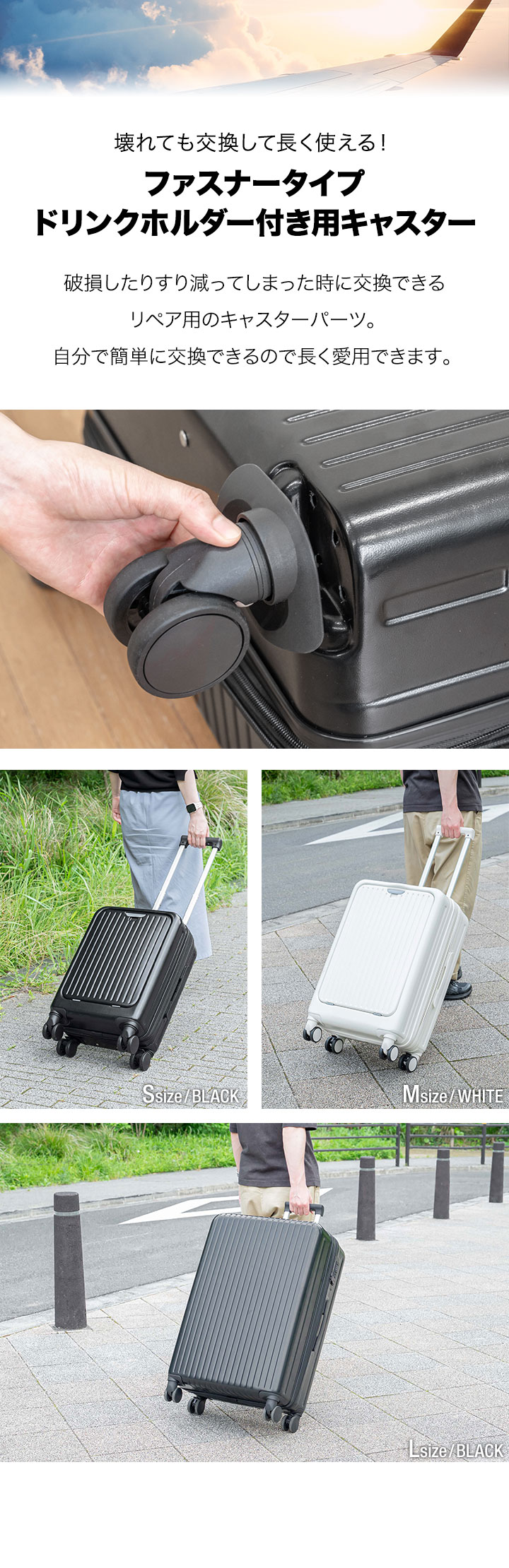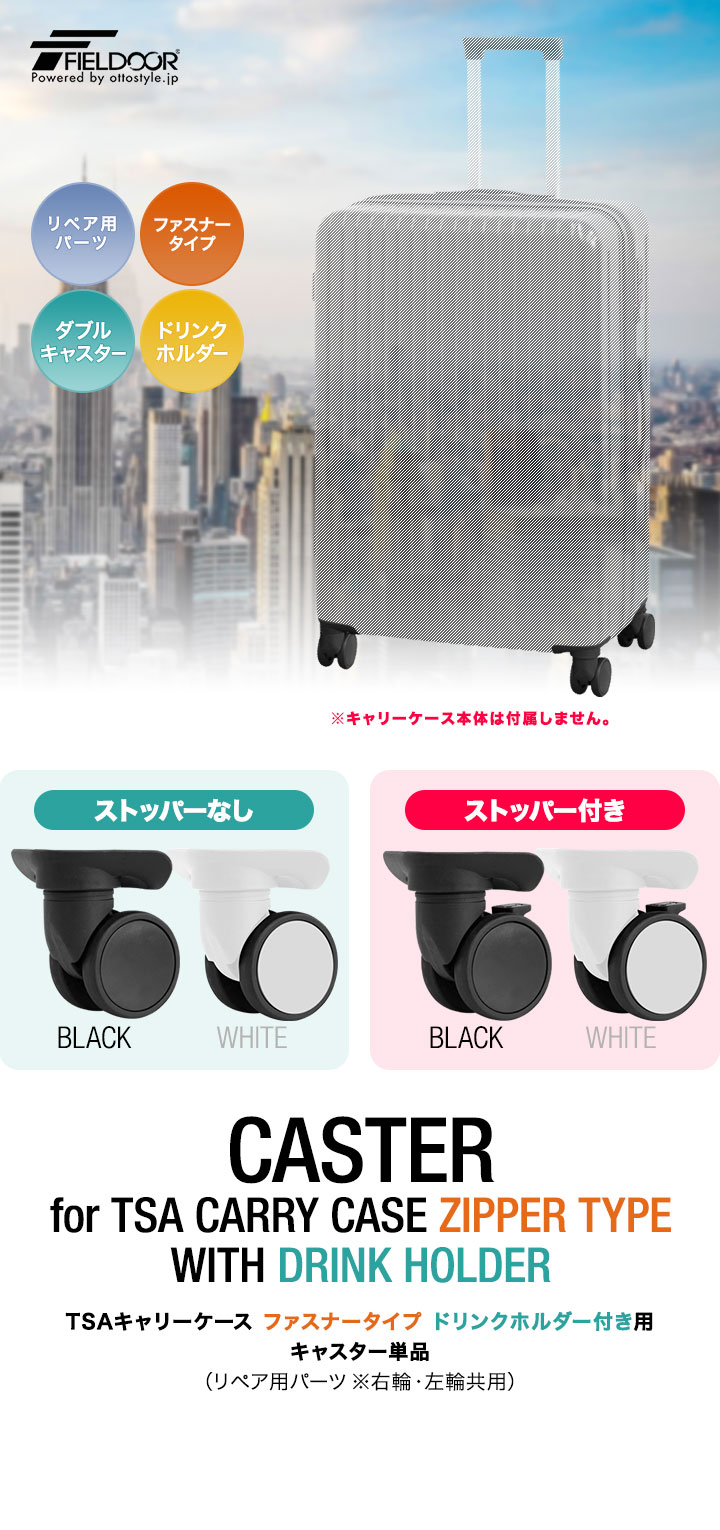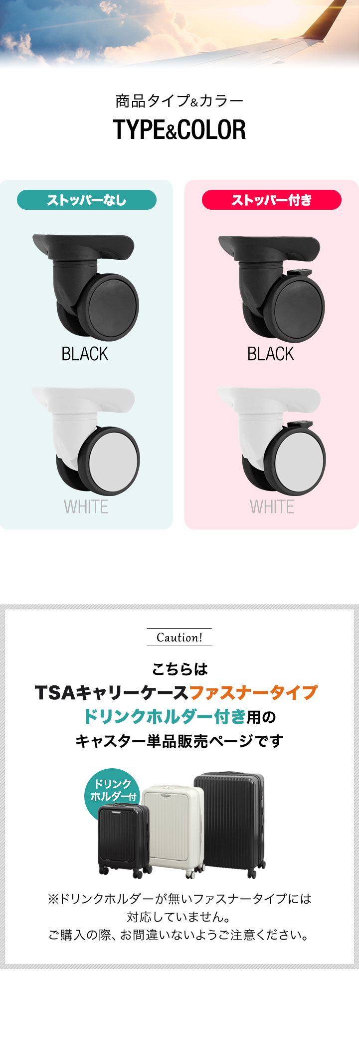 ※こちらのキャスターはTSAキャリーケース ファスナータイプ ドリンクホルダー付き用となります。