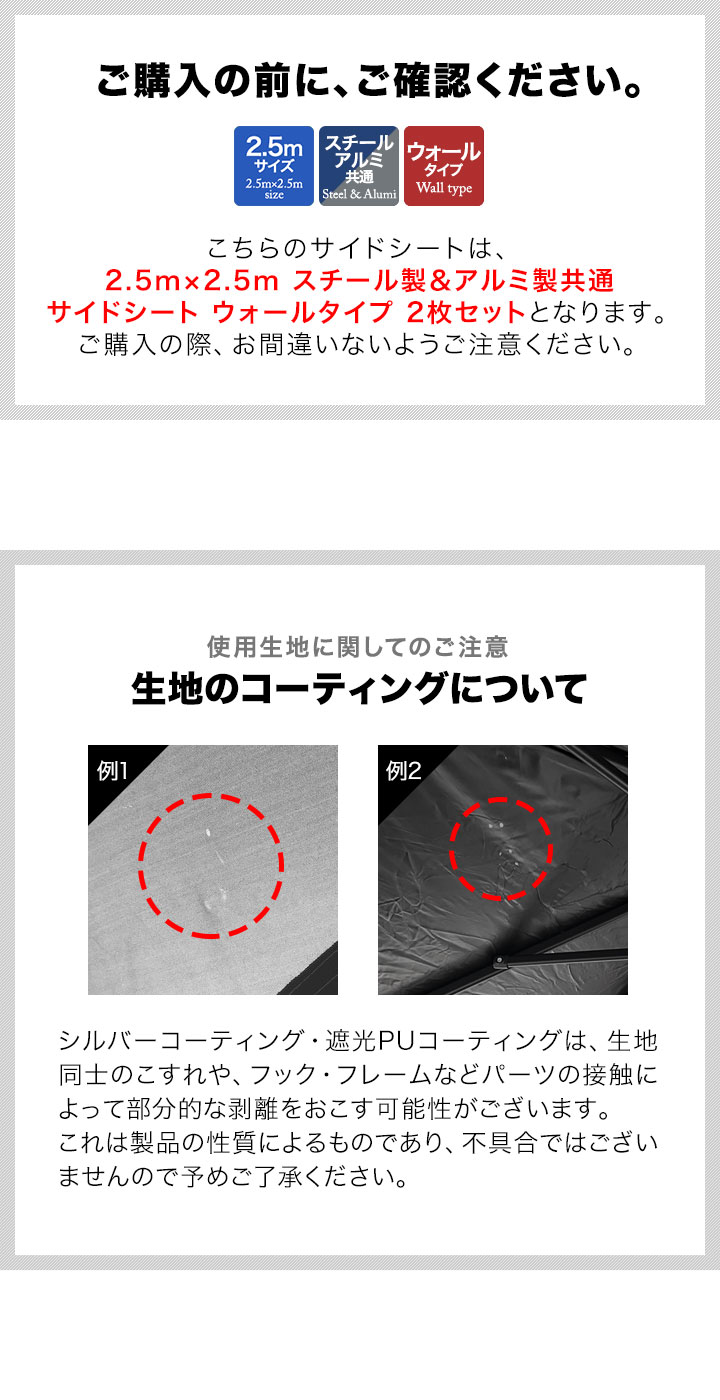 2.5m×2.5m タープテント専用(スチール製・アルミ製共通)