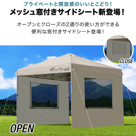 FIELDOOR ワンタッチタープ 2.5m専用 (ウォール:ハーフクリア/2枚セット/標準ポリエステル:ブラック) サイドシート 横幕 250cm ウォールスクリーン 追加オプション ワンタッチタープ専用 日よけ 目隠し シェード ※タープテント本体別売 送料無料
