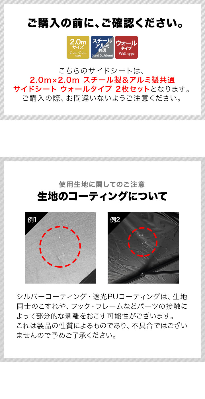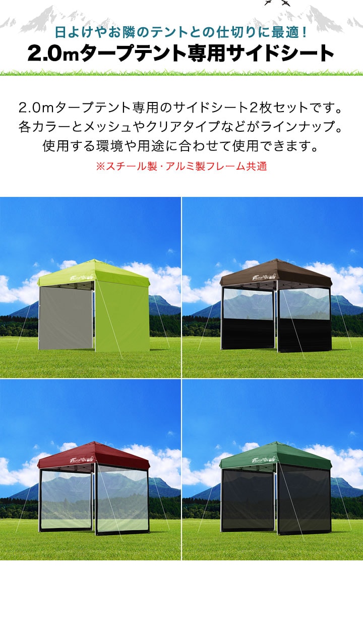| サイズ: 2.0m×2.0m タープテント専用(スチール製・アルミ製共通) |