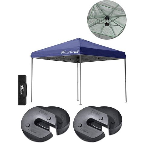 FIELDOOR ワンタッチタープテント 2.5m (標準:ブルー/アルミ/強化版サイドフレーム/4点脚ロック/ウエイト4点組み) 軽量 テント タープ ワンタッチ ワンタッチテント ワンタッチタープ UV加工 撥水 ベンチレーション 収納バッグ付 日よけ キャンプ 送料無料