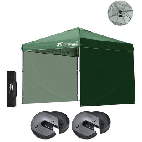 FIELDOOR ワンタッチタープテント 2.5m (標準:グリーン/アルミ/強化版サイドフレーム/4点脚ロック/ウエイト4点組み/サイドシート2枚付) 軽量 テント タープテントタープ UV加工 撥水 ベンチレーション 収納バッグ付 日よけ キャンプ 送料無料