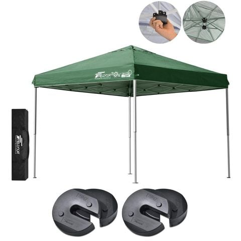 FIELDOOR ワンタッチタープテント 2.5m (標準:グリーン/スチール/強化版サイドフレーム/センターロック/ウエイト4点組み) テント タープ ワンタッチ ワンタッチテント ワンタッチタープ UV加工 撥水 ベンチレーション 収納バッグ付 日よけ キャンプ 送料無料