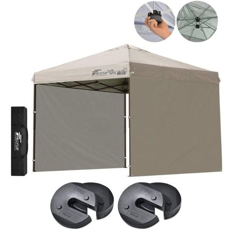 FIELDOOR ワンタッチタープテント 2.5m (標準:ライトベージュ/スチール/強化版サイドフレーム/センターロック/ウエイト4点組み/サイドシート2枚付) テント タープ ワンタッチテント ワンタッチタープ UV加工 撥水 ベンチレーション 日よけ キャンプ 送料無料