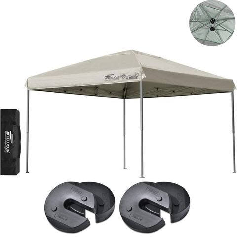 FIELDOOR ワンタッチタープテント 3m (標準:ライトベージュ/アルミ/強化版サイドフレーム/4点脚ロック/ウエイト4点組み) 軽量 テント タープ ワンタッチ ワンタッチテント ワンタッチタープ UV加工 撥水 ベンチレーション 収納バッグ付 日よけ キャンプ 送料無料