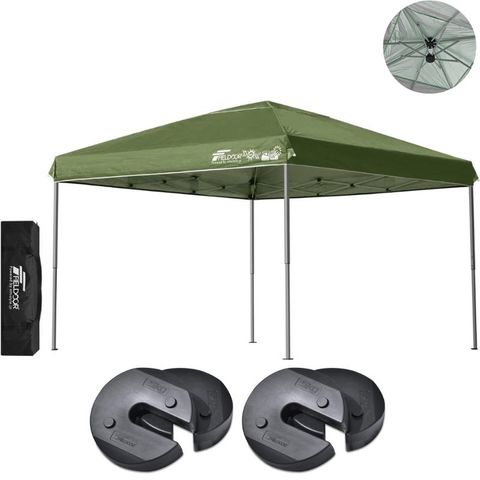 FIELDOOR ワンタッチタープテント 3m (標準:カーキ/アルミ/強化版サイドフレーム/4点脚ロック/ウエイト4点組み) 軽量 テント タープ ワンタッチ ワンタッチテント ワンタッチタープ UV加工 撥水 ベンチレーション 収納バッグ付 日よけ キャンプ 送料無料