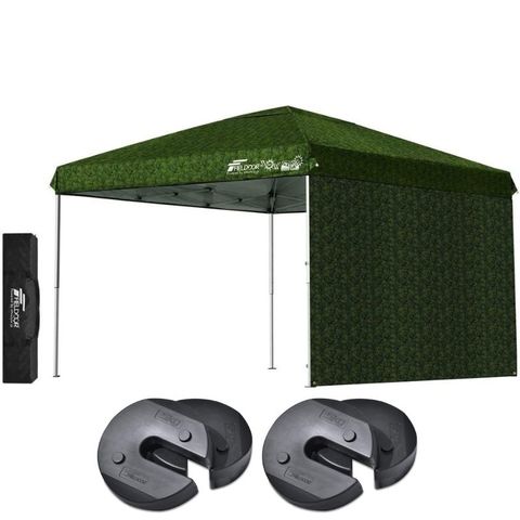 FIELDOOR ワンタッチタープテント 3m (標準:カモフラージュグリーン/スチール/4点脚ロック/ウエイト4点組み/サイドシート1枚付) テント タープ ワンタッチ ワンタッチテント ワンタッチタープ UV加工 撥水 ベンチレーション 収納バッグ付 日よけ キャンプ 送料無料