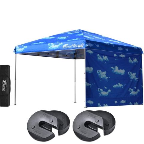 FIELDOOR ワンタッチタープテント 3m (標準:ブルースカイ/スチール/4点脚ロック/ウエイト4点組み/サイドシート1枚付) テント タープ ワンタッチ ワンタッチテント ワンタッチタープ UV加工 撥水 ベンチレーション 収納バッグ付 日よけ キャンプ バーベキュー 送料無料