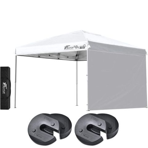 FIELDOOR ワンタッチタープテント 3m (標準:ホワイト/スチール/4点脚ロック/ウエイト4点組み/サイドシート1枚付) テント タープ ワンタッチ ワンタッチテント ワンタッチタープ UV加工 撥水 ベンチレーション 収納バッグ付 日よけ キャンプ バーベキュー 送料無料