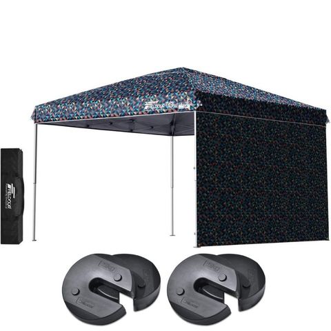 FIELDOOR ワンタッチタープテント 3m (標準:トライアングルネイビー/スチール/4点脚ロック/ウエイト4点組み/サイドシート1枚付) テント タープ ワンタッチ ワンタッチテント ワンタッチタープ UV加工 撥水 ベンチレーション 収納バッグ付 日よけ キャンプ 送料無料