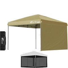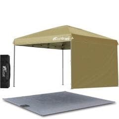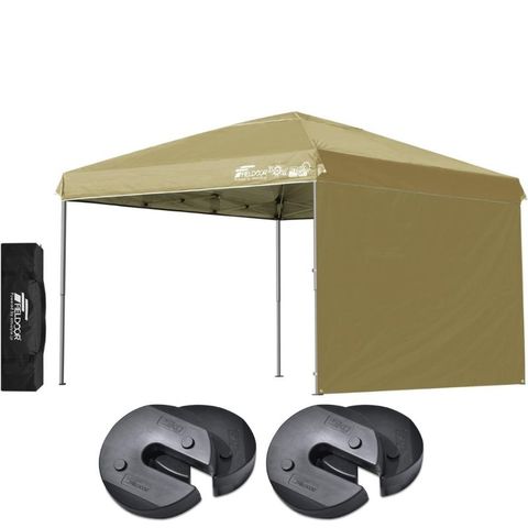 FIELDOOR ワンタッチタープテント 3m (標準:サンド/アルミ/4点脚ロック/ウエイト4点組み/サイドシート1枚付) 軽量 テント タープ ワンタッチ ワンタッチテント ワンタッチタープ UV加工 撥水 ベンチレーション 収納バッグ付 日よけ キャンプ 送料無料