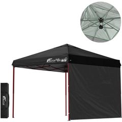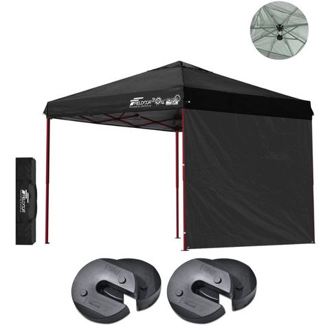 FIELDOOR ワンタッチタープテント 2.5m (標準:ブラック/スチール/強化版サイドフレーム/4点脚ロック/ウエイト4点組み/サイドシート1枚付) テント タープ ワンタッチテント ワンタッチタープ UV加工 撥水 ベンチレーション 日よけ キャンプ 送料無料
