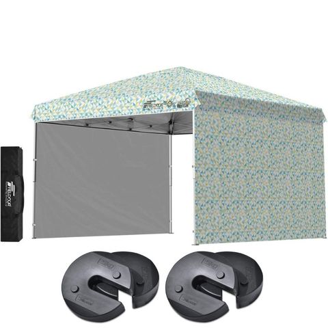 FIELDOOR ワンタッチタープテント 3m (標準:トライアングルホワイト/スチール/4点脚ロック/ウエイト4点組み/サイドシート2枚付) テント タープ ワンタッチ ワンタッチテント ワンタッチタープ UV加工 撥水 ベンチレーション 収納バッグ付 日よけ キャンプ 送料無料