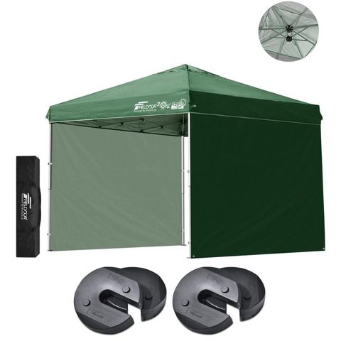FIELDOOR ワンタッチタープテント 2.5m (標準:グリーン/スチール/強化版サイドフレーム/4点脚ロック/ウエイト4点組み/サイドシート2枚付) テント タープ ワンタッチテント ワンタッチタープ UV加工 撥水 ベンチレーション 日よけ キャンプ 送料無料