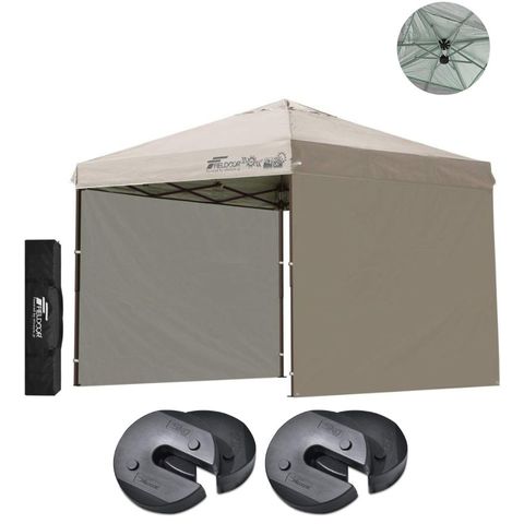 FIELDOOR ワンタッチタープテント 2.5m (標準:ライトベージュ/スチール/強化版サイドフレーム/4点脚ロック/ウエイト4点組み/サイドシート2枚付) テント タープ ワンタッチテント ワンタッチタープ UV加工 撥水 ベンチレーション 日よけ キャンプ 送料無料