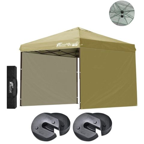 FIELDOOR ワンタッチタープテント 2.5m (標準:サンド/スチール/強化版サイドフレーム/4点脚ロック/ウエイト4点組み/サイドシート2枚付) テント タープ ワンタッチテント ワンタッチタープ UV加工 撥水 ベンチレーション 日よけ キャンプ 送料無料