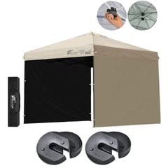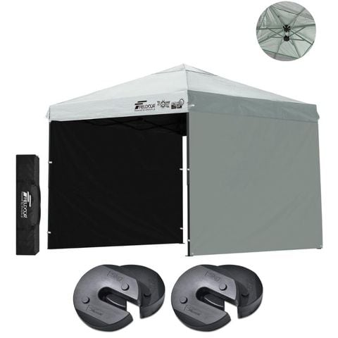 FIELDOOR ワンタッチタープテント 2.5m (遮光遮熱PU:グレー/スチール/強化版サイドフレーム/4点脚ロック/ウエイト4点組み/サイドシート2枚付) テント タープ ワンタッチテント ワンタッチタープ UV加工 撥水 ベンチレーション 日よけ キャンプ 送料無料