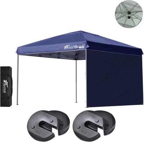 FIELDOOR ワンタッチタープテント 3m (標準:ブルー/アルミ/強化版サイドフレーム/4点脚ロック/ウエイト4点組み/サイドシート1枚付) 軽量 テント タープ ワンタッチテント ワンタッチタープ UV加工 撥水 ベンチレーション 収納バッグ付 日よけ キャンプ 送料無料