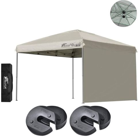 FIELDOOR ワンタッチタープテント 3m (標準:ライトベージュ/アルミ/強化版サイドフレーム/4点脚ロック/ウエイト4点組み/サイドシート1枚付) 軽量 テント タープ ワンタッチテント ワンタッチタープ UV加工 撥水 ベンチレーション 収納バッグ 日よけ キャンプ 送料無料
