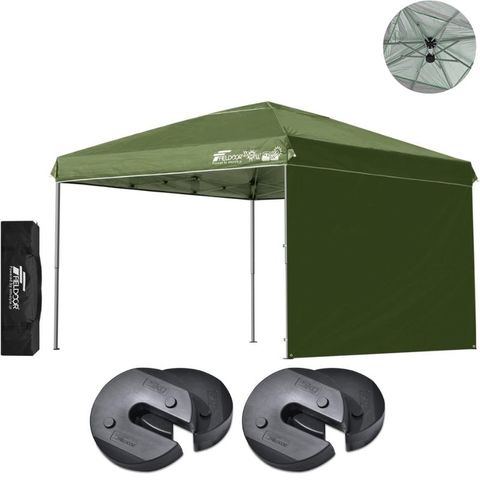 FIELDOOR ワンタッチタープテント 3m (標準:カーキ/アルミ/強化版サイドフレーム/4点脚ロック/ウエイト4点組み/サイドシート1枚付) 軽量 テント タープ ワンタッチテント ワンタッチタープ UV加工 撥水 ベンチレーション 収納バッグ付 日よけ キャンプ 送料無料