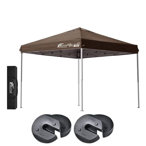 FIELDOOR ワンタッチタープテント 2.5m (標準:ダークブラウン/スチール/4点脚ロック/ウエイト4点組み) テント タープ ワンタッチ ワンタッチテント ワンタッチタープ UV加工 撥水 ベンチレーション 収納バッグ付 日よけ キャンプ バーベキュー 送料無料