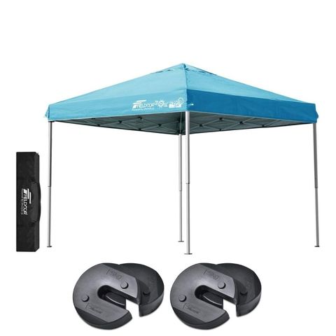 FIELDOOR ワンタッチタープテント 2.5m (標準:ターコイズ/スチール/4点脚ロック/ウエイト4点組み) テント タープ ワンタッチ ワンタッチテント ワンタッチタープ UV加工 撥水 ベンチレーション 収納バッグ付 日よけ キャンプ バーベキュー 送料無料