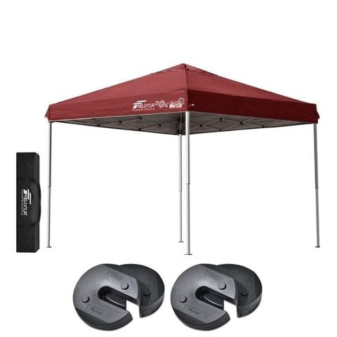 FIELDOOR ワンタッチタープテント 2.5m (標準:ボルドー/スチール/4点脚ロック/ウエイト4点組み) テント タープ ワンタッチ ワンタッチテント ワンタッチタープ UV加工 撥水 ベンチレーション 収納バッグ付 日よけ キャンプ バーベキュー 送料無料