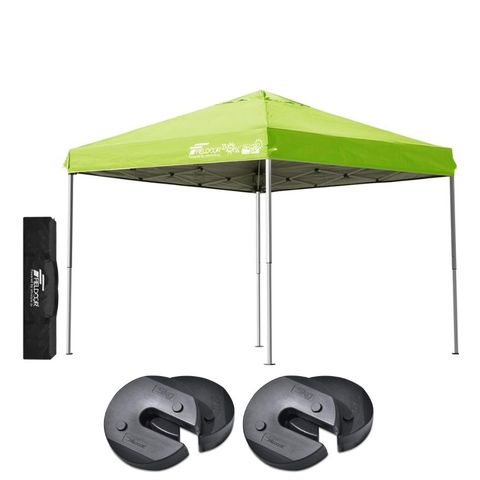 FIELDOOR ワンタッチタープテント 2.5m (標準:ライム/スチール/4点脚ロック/ウエイト4点組み) テント タープ ワンタッチ ワンタッチテント ワンタッチタープ UV加工 撥水 ベンチレーション 収納バッグ付 日よけ キャンプ バーベキュー 送料無料