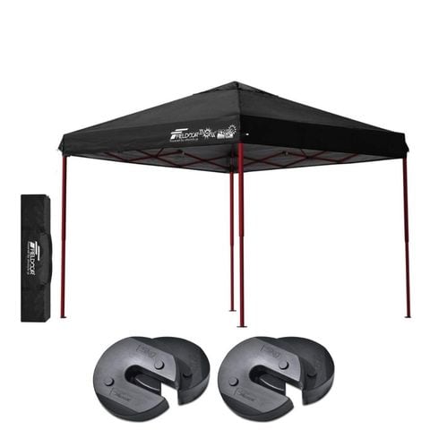 FIELDOOR ワンタッチタープテント 2.5m (標準:ブラック/スチール/4点脚ロック/ウエイト4点組み) テント タープ ワンタッチ ワンタッチテント ワンタッチタープ UV加工 撥水 ベンチレーション 収納バッグ付 日よけ キャンプ バーベキュー 送料無料