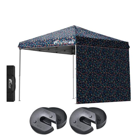 FIELDOOR ワンタッチタープテント 2.5m (標準:トライアングルネイビー/スチール/4点脚ロック/ウエイト4点組み/サイドシート1枚付) テント タープ ワンタッチ ワンタッチテント ワンタッチタープ UV加工 撥水 ベンチレーション 収納バッグ付 日よけ キャンプ 送料無料