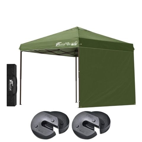 FIELDOOR ワンタッチタープテント 2.5m (標準:カーキ/スチール/4点脚ロック/ウエイト4点組み/サイドシート1枚付) テント タープ ワンタッチ ワンタッチテント ワンタッチタープ UV加工 撥水 ベンチレーション 収納バッグ付 日よけ キャンプ バーベキュー 送料無料