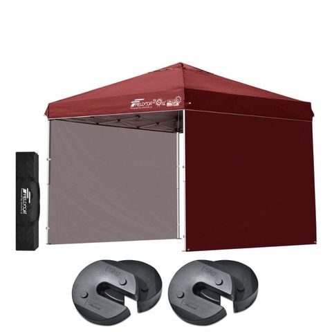 FIELDOOR ワンタッチタープテント 2.5m (標準:ボルドー/スチール/4点脚ロック/ウエイト4点組み/サイドシート2枚付) テント タープ ワンタッチ ワンタッチテント ワンタッチタープ UV加工 撥水 ベンチレーション 収納バッグ付 日よけ キャンプ バーベキュー 送料無料