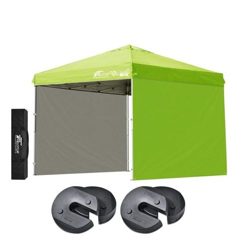 FIELDOOR ワンタッチタープテント 2.5m (標準:ライム/スチール/4点脚ロック/ウエイト4点組み/サイドシート2枚付) テント タープ ワンタッチ ワンタッチテント ワンタッチタープ UV加工 撥水 ベンチレーション 収納バッグ付 日よけ キャンプ バーベキュー 送料無料