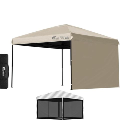 FIELDOOR ワンタッチタープテント 3m (遮光遮熱PU:ライトベージュ/スチール/4点脚ロック/バグガード/サイドシート1枚付) テント タープ ワンタッチ ワンタッチテント ワンタッチタープ UV加工 撥水 ベンチレーション 収納バッグ付 日よけ キャンプ 送料無料