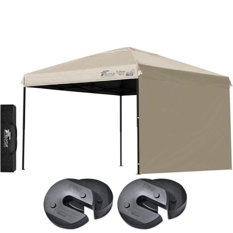 FIELDOOR ワンタッチタープテント 3m (遮光遮熱PU:ライトベージュ/スチール/4点脚ロック/ウエイト4点組み/サイドシート1枚付) テント タープ ワンタッチ ワンタッチテント ワンタッチタープ UV加工 撥水 ベンチレーション 収納バッグ付 日よけ キャンプ 送料無料