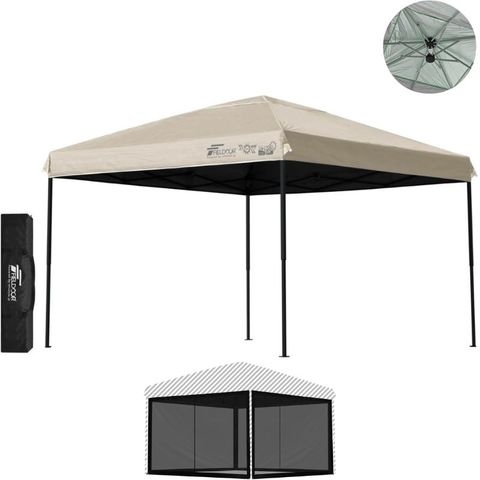 FIELDOOR ワンタッチタープテント 3m (遮光遮熱PU:ライトベージュ/スチール/強化版サイドフレーム/4点脚ロック/バグガード) テント タープ ワンタッチ ワンタッチテント ワンタッチタープ UV加工 撥水 ベンチレーション 収納バッグ付 日よけ キャンプ 送料無料