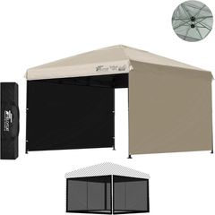 FIELDOOR ワンタッチタープテント 3m (遮光遮熱PU:ライトベージュ/スチール/強化版サイドフレーム/4点脚ロック/強化サポート/サイドシート2枚付) テント タープ ワンタッチテント ワンタッチタープ UV加工 撥水 ベンチレーション 日よけ キャンプ 送料無料