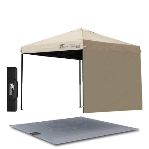 FIELDOOR ワンタッチタープテント 2.5m (遮光遮熱PU:ライトベージュ/スチール/4点脚ロック/グランドシート/サイドシート1枚付) テント タープ ワンタッチ ワンタッチテント ワンタッチタープ UV加工 撥水 ベンチレーション 収納バッグ付 日よけ キャンプ 送料無料