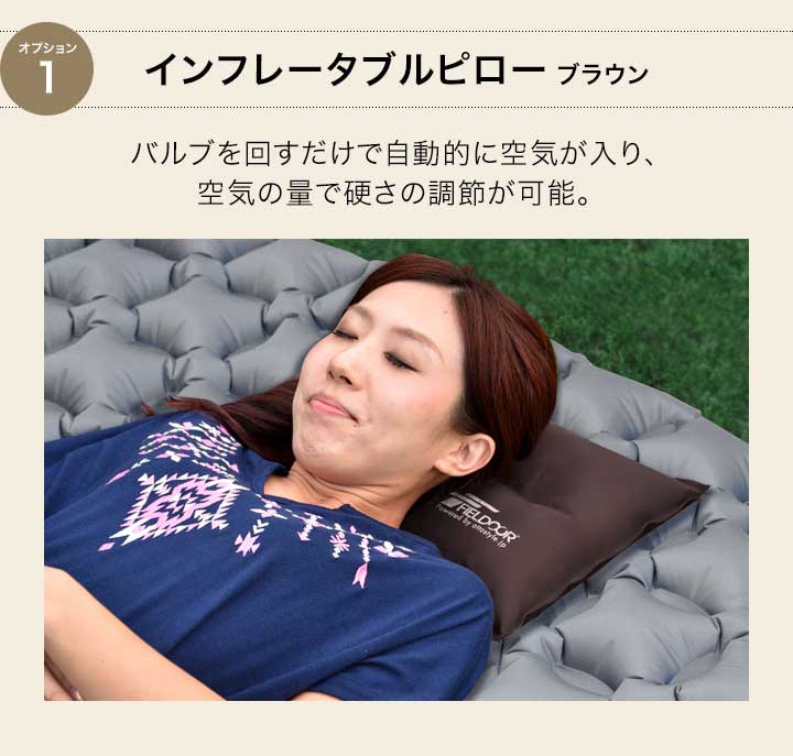 FIELDOOR キャンプマット エアーマット (本体&インフレータブル枕セット) 196cm×118cm ダブル D 厚さ5cm 超軽量 インフレータブル コンパクト ウルトラライト エアーベッド 収納 キャンプ キャンピングマット クッション シュラフ テント 登山 車中泊 送料無料