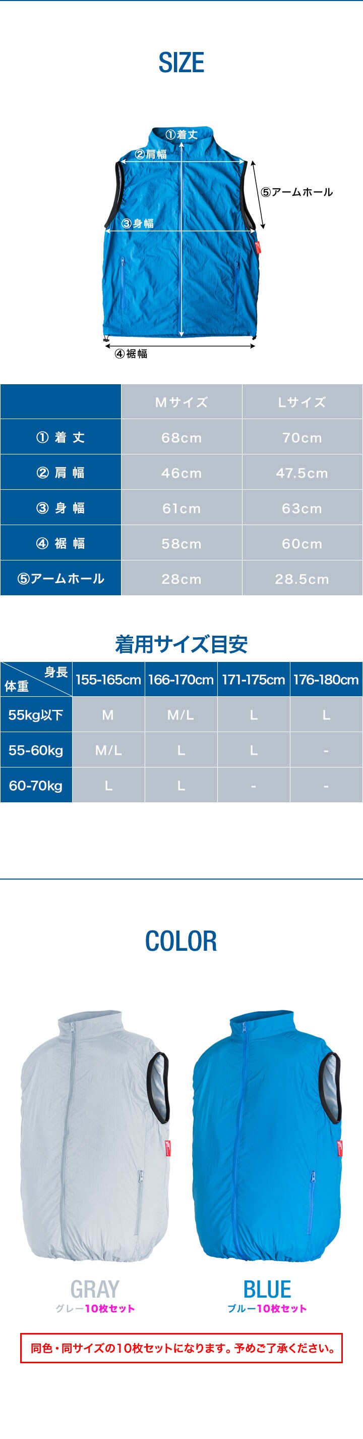 | サイズ: ・ベスト:M、L ・ファン:(約)直径105×40mm |