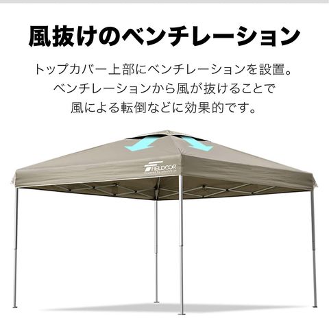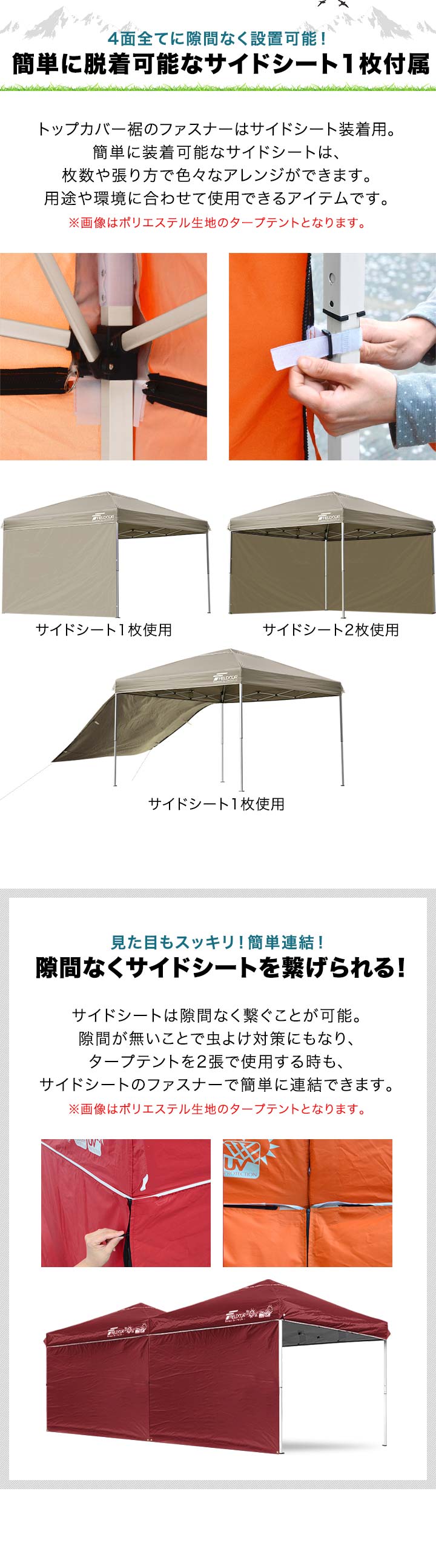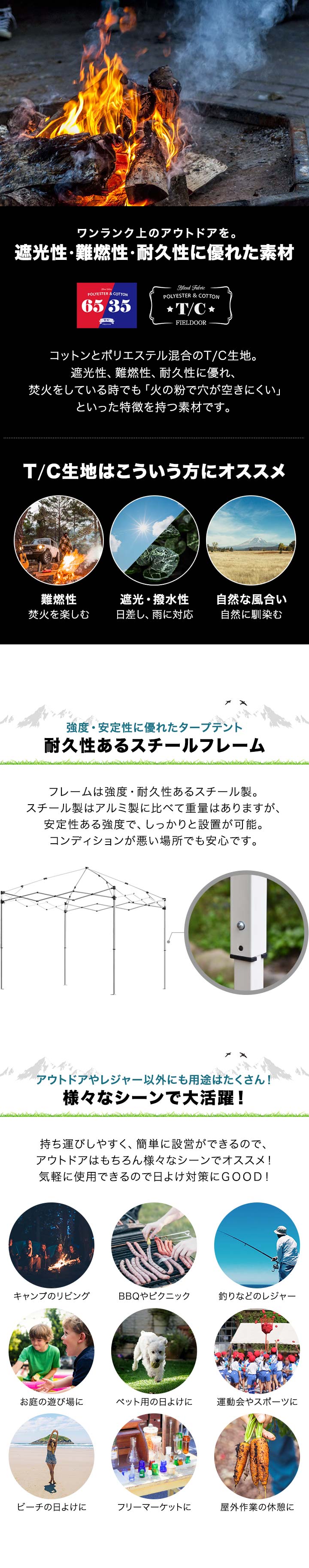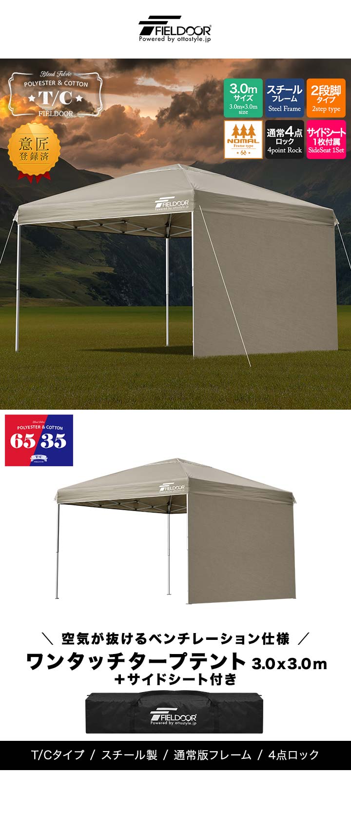 FIELDOOR ワンタッチタープテント 3m (難燃T/Cポリコットン/スチール/4点脚ロック/タープ本体のみ/サイドシート1枚付) テント タープ ワンタッチ ワンタッチテント ワンタッチタープ UV加工 撥水 ベンチレーション 収納バッグ付 日よけ キャンプ 送料無料