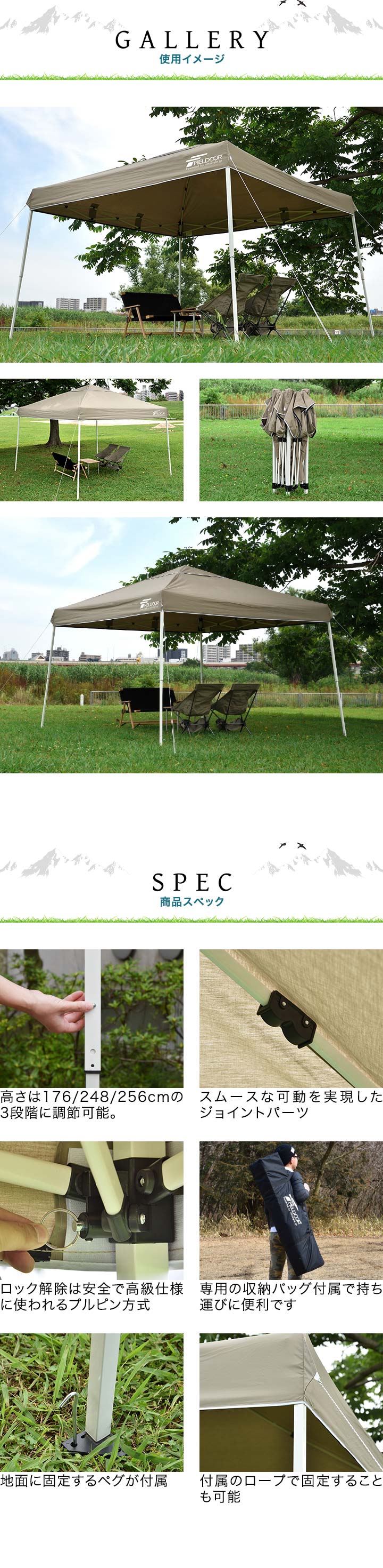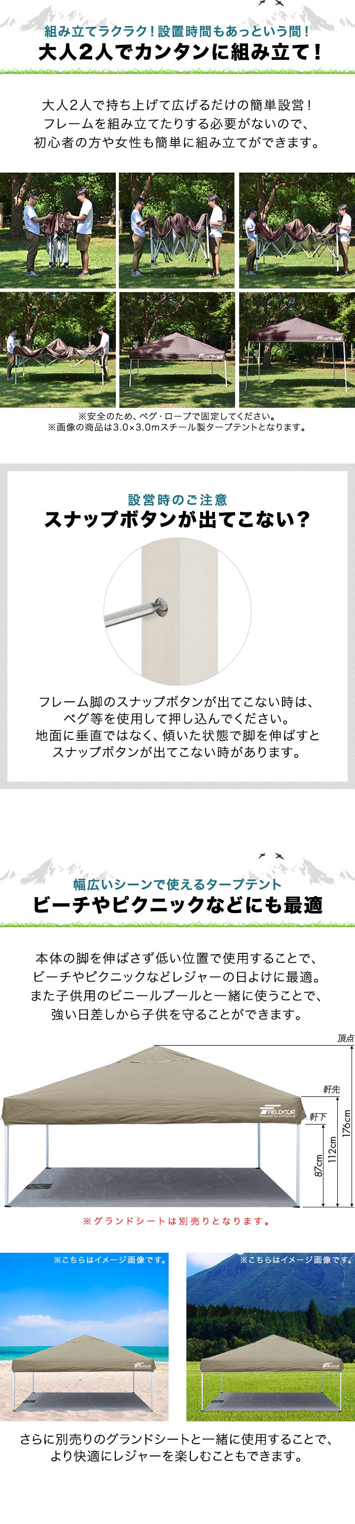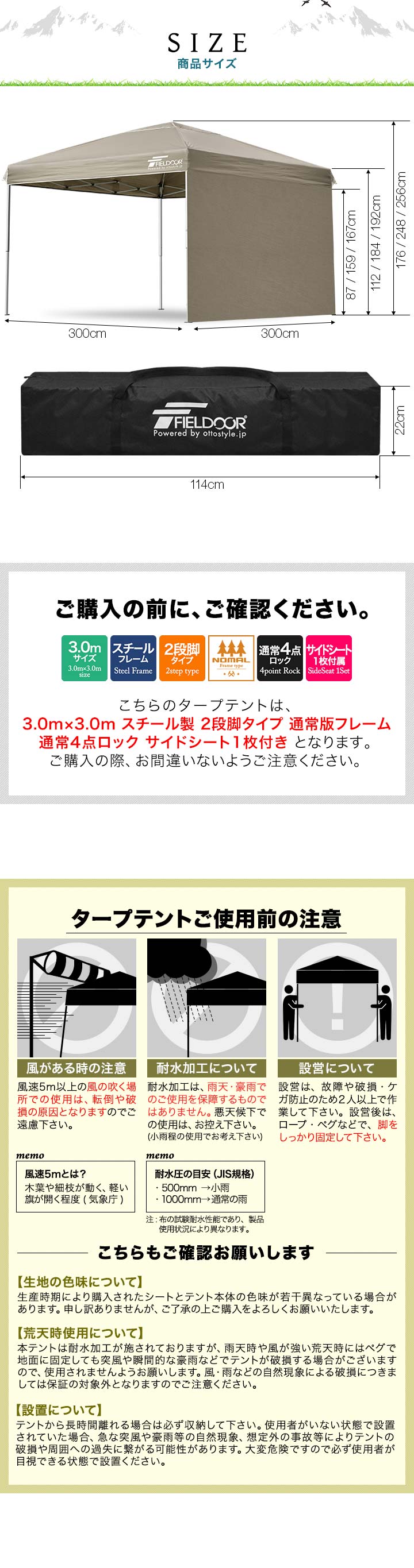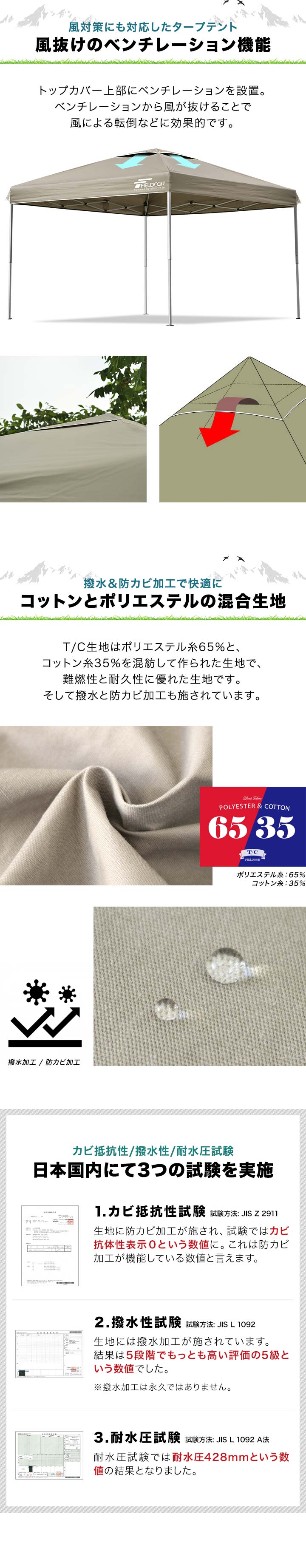 FIELDOOR ワンタッチタープテント 3m (難燃T/Cポリコットン/スチール/4点脚ロック/タープ本体のみ/サイドシート1枚付) テント タープ ワンタッチ ワンタッチテント ワンタッチタープ UV加工 撥水 ベンチレーション 収納バッグ付 日よけ キャンプ 送料無料