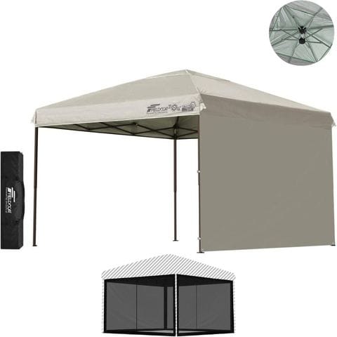 FIELDOOR ワンタッチタープテント 3m (標準:ライトベージュ/スチール/強化版サイドフレーム/4点脚ロック/バグガード/サイドシート1枚付) テント タープ ワンタッチテント ワンタッチタープ UV加工 撥水 ベンチレーション 日よけ キャンプ 送料無料