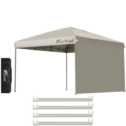 FIELDOOR ワンタッチタープテント 3m (標準:ライトベージュ/アルミ/4点脚ロック/強化サポート/サイドシート1枚付) 軽量 テント タープ ワンタッチ ワンタッチテント ワンタッチタープ UV加工 撥水 ベンチレーション 収納バッグ付 日よけ キャンプ 送料無料