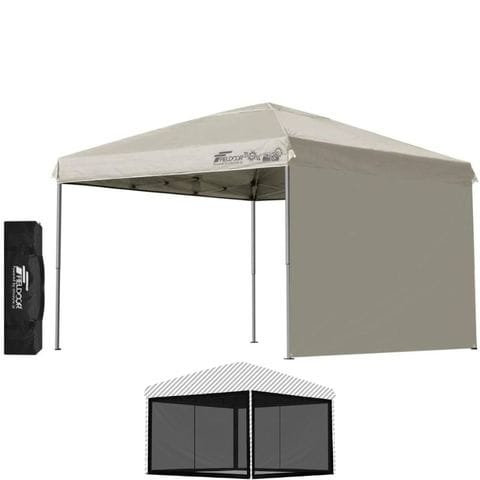 FIELDOOR ワンタッチタープテント 3m (標準:ライトベージュ/アルミ/4点脚ロック/バグガード/サイドシート1枚付) 軽量 テント タープ ワンタッチ ワンタッチテント ワンタッチタープ UV加工 撥水 ベンチレーション 収納バッグ付 日よけ キャンプ 送料無料