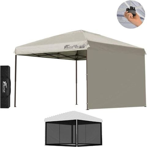 FIELDOOR ワンタッチタープテント 3m (標準:ライトベージュ/スチール/センターロック/バグガード/サイドシート1枚付) テント タープ ワンタッチ ワンタッチテント ワンタッチタープ UV加工 撥水 ベンチレーション 収納バッグ付 日よけ キャンプ バーベキュー 送料無料