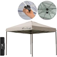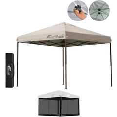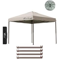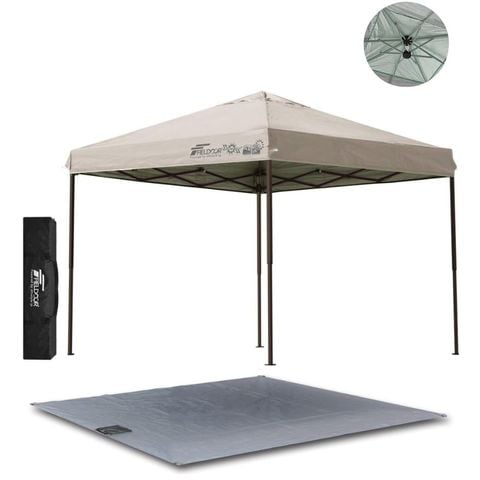 FIELDOOR ワンタッチタープテント 2.5m (標準:ライトベージュ/スチール/強化版サイドフレーム/4点脚ロック/グランドシート) テント タープ ワンタッチ ワンタッチテント ワンタッチタープ UV加工 撥水 ベンチレーション 収納バッグ付 日よけ キャンプ 送料無料