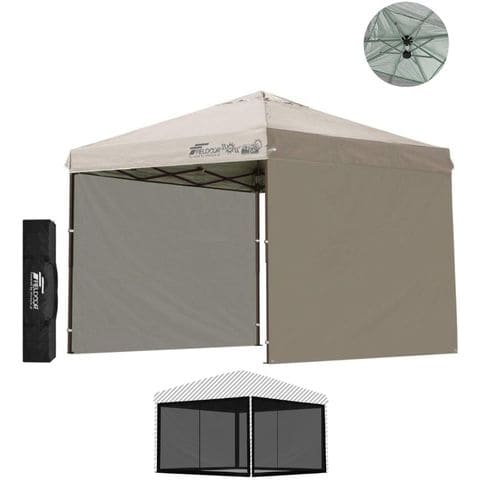 FIELDOOR ワンタッチタープテント 2.5m (標準:ライトベージュ/スチール/強化版サイドフレーム/4点脚ロック/バグガード/サイドシート2枚付) テント タープ ワンタッチテント ワンタッチタープ UV加工 撥水 ベンチレーション 日よけ キャンプ 送料無料